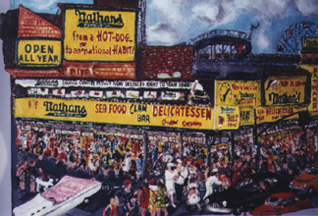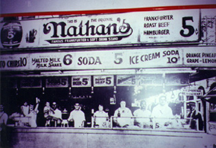 Above, the legendary Nathan's hotdog stand on Coney Island as it existed many-a-year ago.